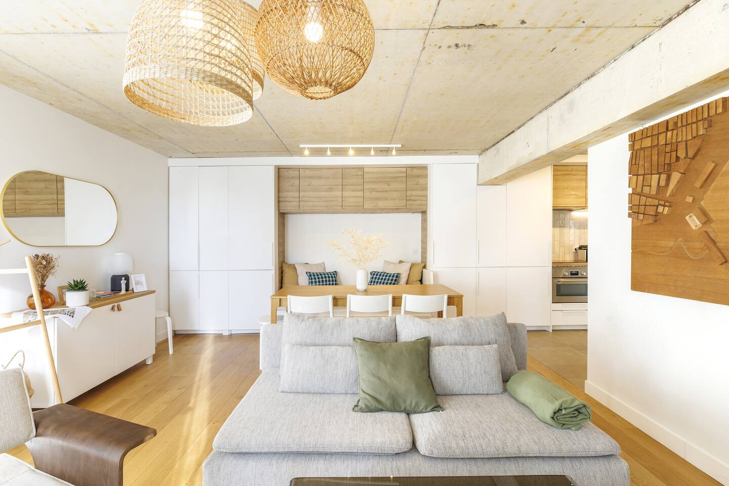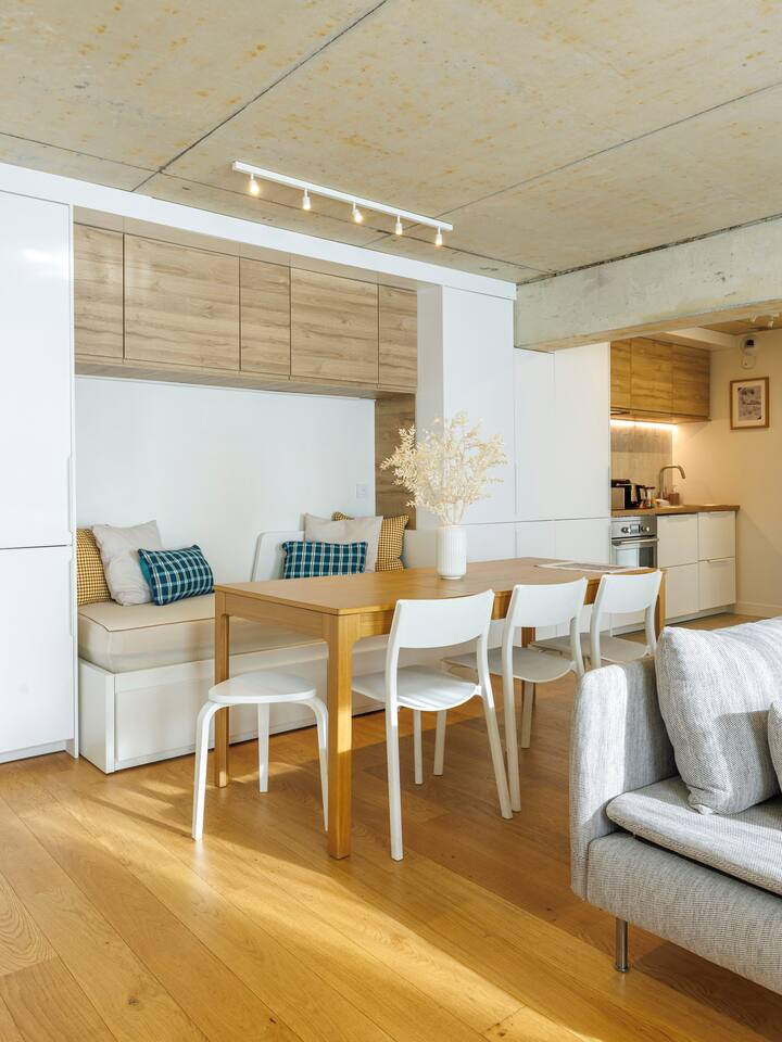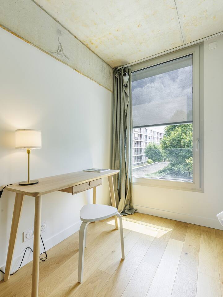 Discover our 62 m² designer apartment, in the heart of Chartrons in a secure residence, just steps from the riverfront and the Cité du Vin. Tram B – Les Hangars stop towards the historic center. Quiet and bright interior, cooled in summer by geothermal active slabs. 2 bedrooms + living room, equipped kitchen, fiber Wi-Fi.
