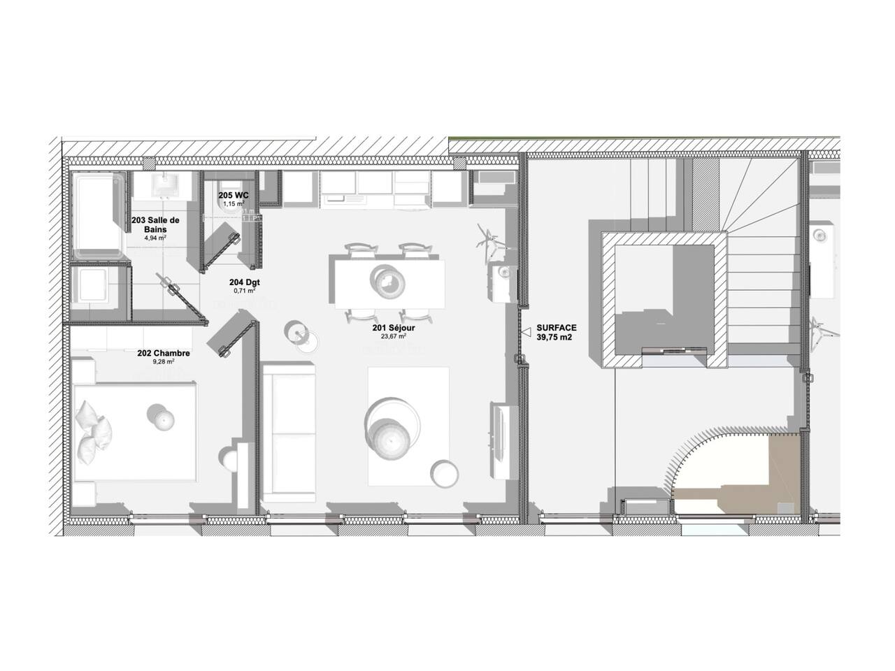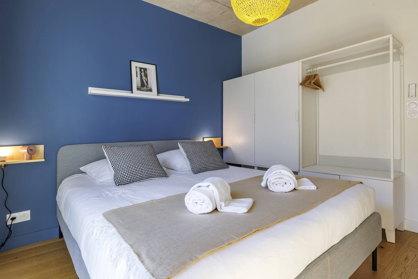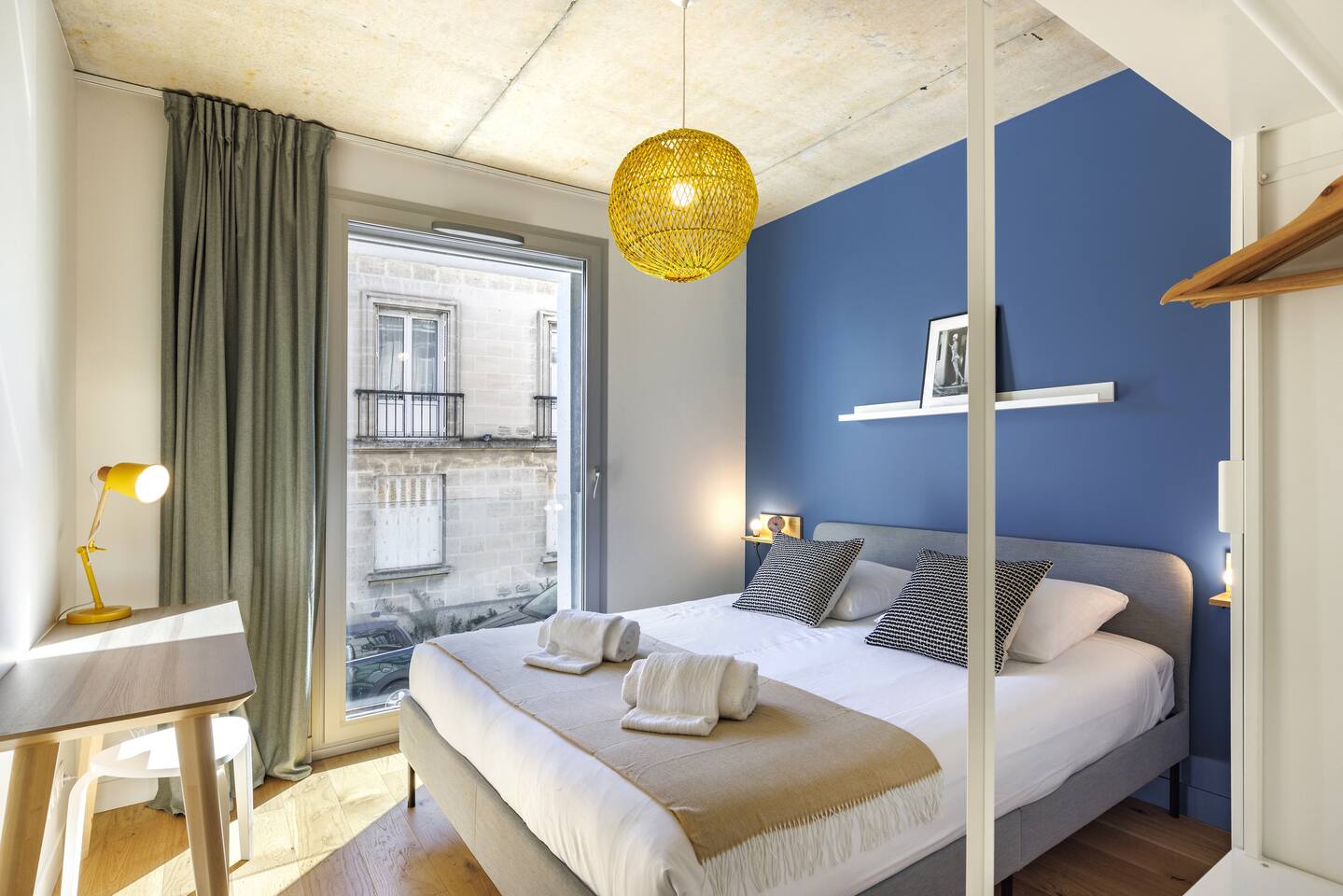 Discover our stylish 40 m² apartment in the heart of Chartrons, in a secure residence just steps from the riverfront and the Cité du Vin. Tram B – Les Hangars stop towards the historic center. Quiet and bright interior, cooled in summer by geothermal active slabs. 1 bedroom + living room, equipped kitchen, fiber Wi-Fi.